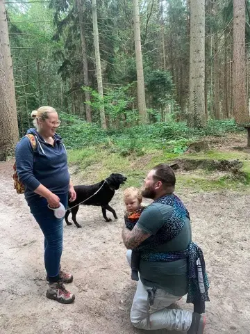 Op een doodgewone zondag gingen we met z’n allen wandelen in het mooie Sterrebos in Frederiksoord. Jurre in de draagzak, Esmee in volle galop over de paden. Corné gaf Esmee ineens de telefoon “om foto’s te maken”… en ging prompt op één knie voor Nienke. Ze had hem voor de grap al vaak gepusht, maar dit moment? Dat was ineens héél echt!